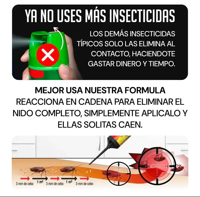 Los insecticidas tradicionales causan un sin fin de enfermedades y nuestro gel ofrece una solución rápida y efectiva para eliminar sin necesidad de usar insecticidas tóxicos
