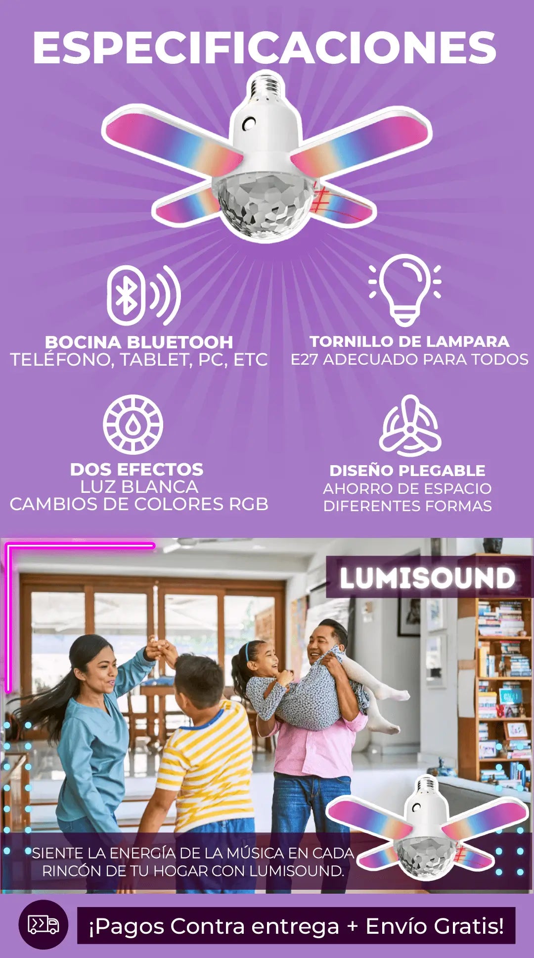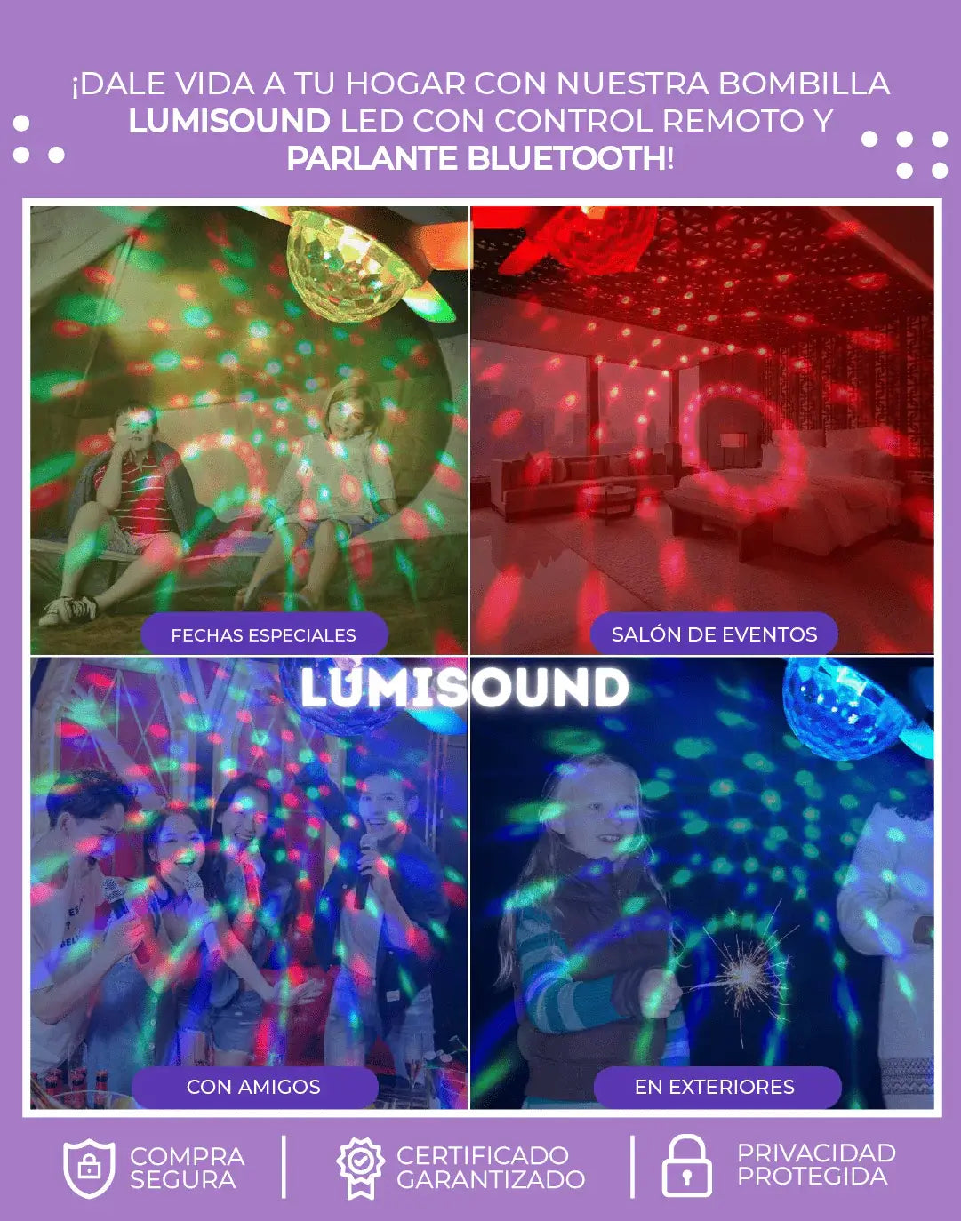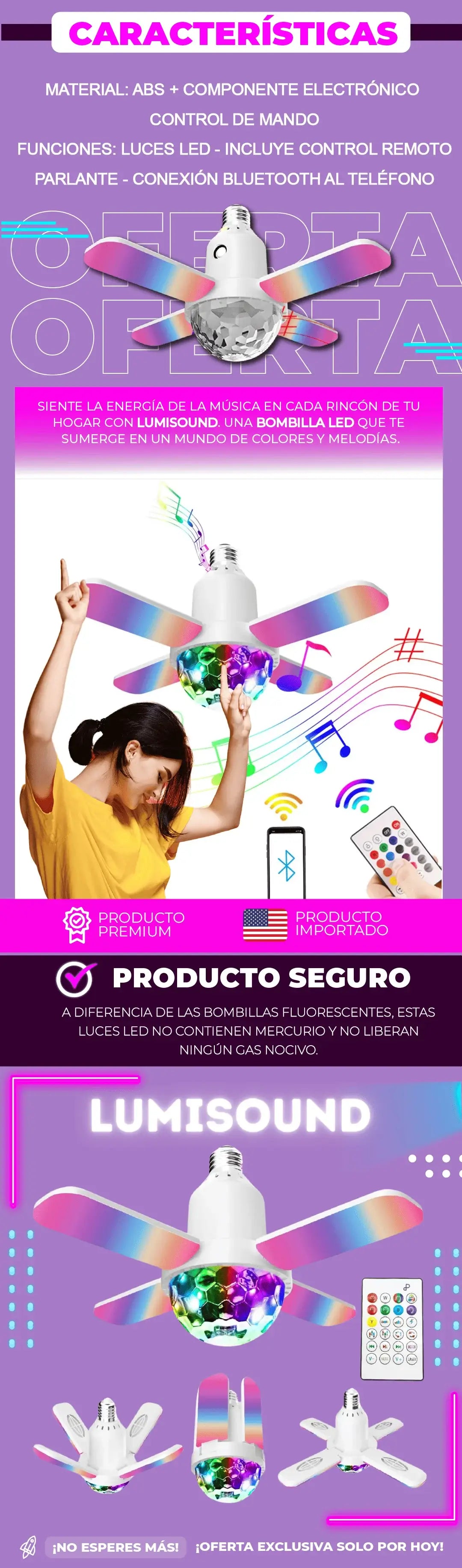 BOMBILLA PARLANTE CON LUCES DE DISCOTECA