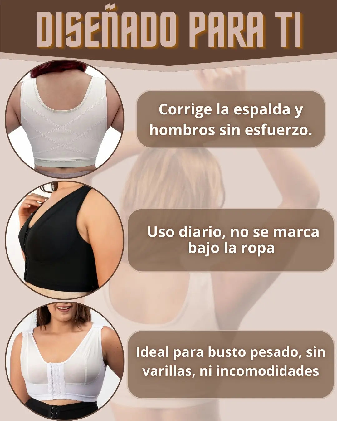 Diseño ergonómico, sin varillas, con refuerzo trasero en X que distribuye el peso, para mayor descanso en hombros y espalda