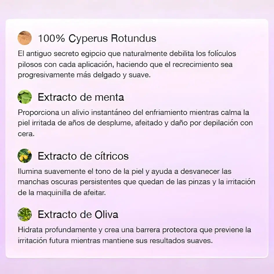 piloso, debilitando.💜 Reduce la irritación post-depilación💜 Debilita el vello nuevo desde la raíz💜 Hace que crezca más lento y más fino💜 Aparece en menor cantidad en cada ciclo💜