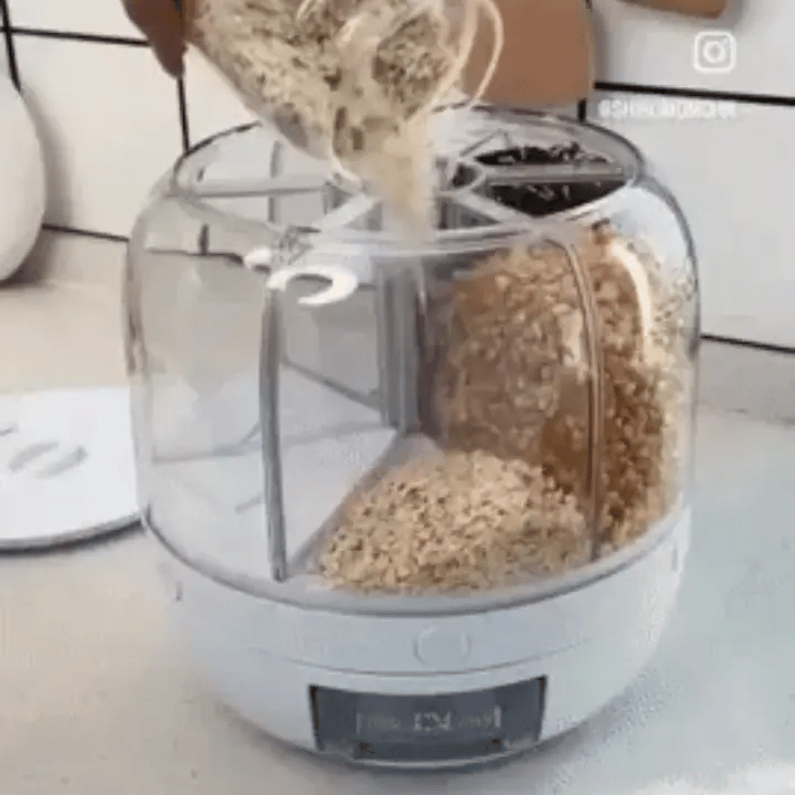 Accede fácilmente a todos tus granos sin mover el dispensador con 6 divisiones independientes.