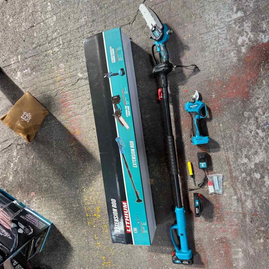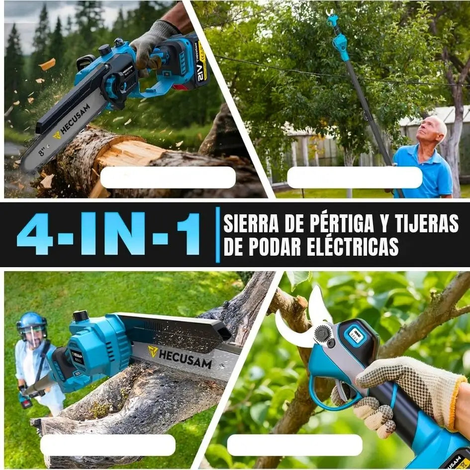 Tijera eléctrica, mini motosierra y tubo extensor: 3 herramientas en 1 kit compacto