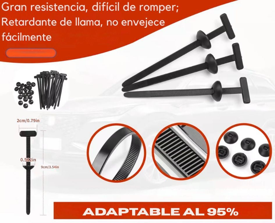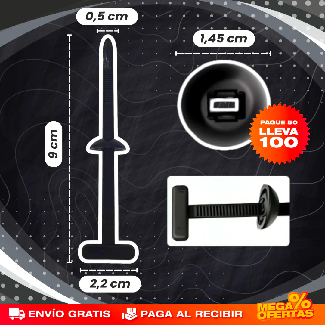 Diseñados con sistema autoblocante tipo cremallera y soporte con pin de fijación.